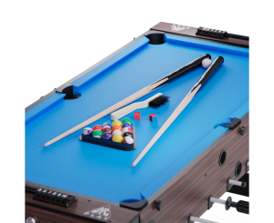 Игровое поле для футбола выполнено из МДФ толщиной 3 миллиметра с зеленым ламинированным покрытием из ПВХ; для бильярда – из МДФ толщиной 4,75 миллиметров с зеленой тканью, состоящей из смеси шерсти и нейлона